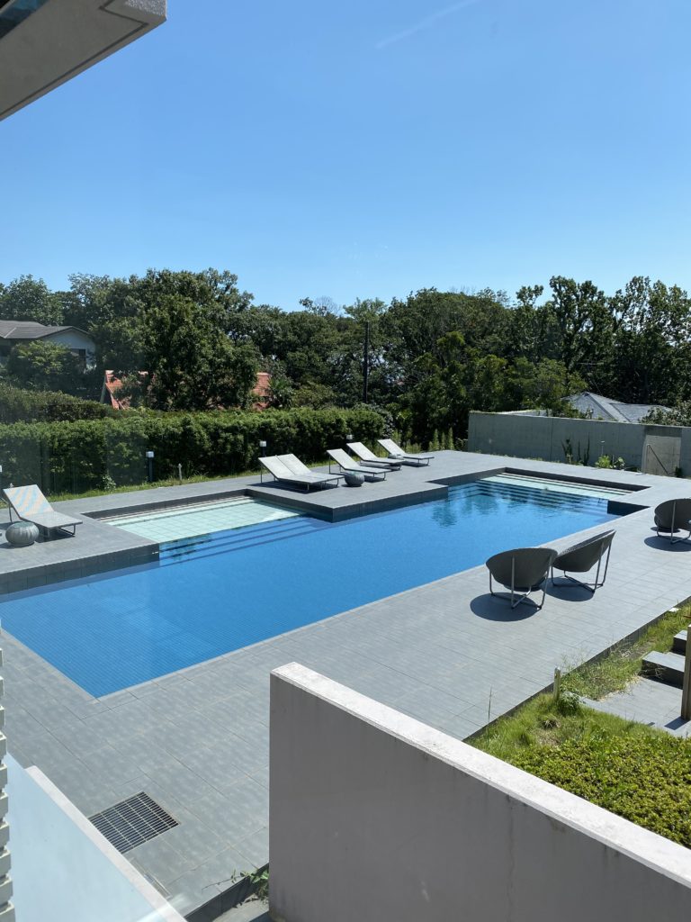 奥に見えるのは夏季のみ使用できるプールです。