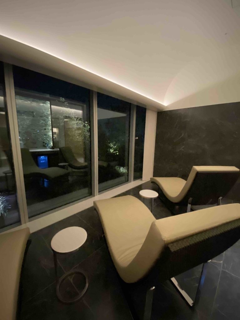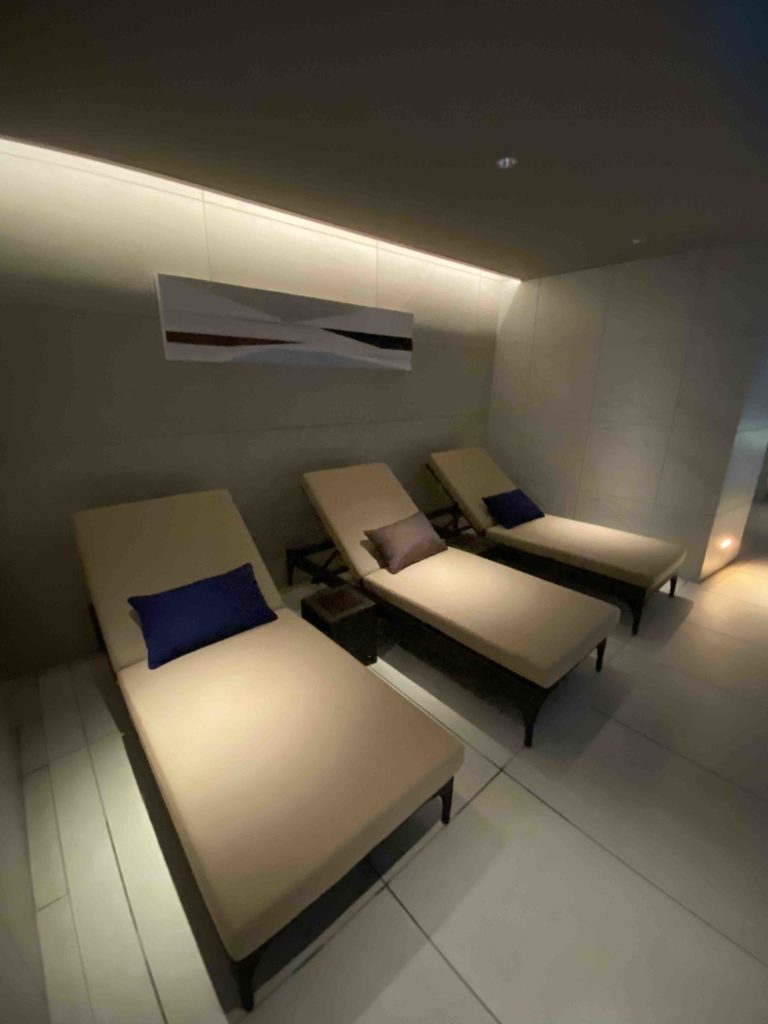 一通りお部屋に変える支度を済ませた後はこちらのリラクゼーションスペースでしばし休憩。