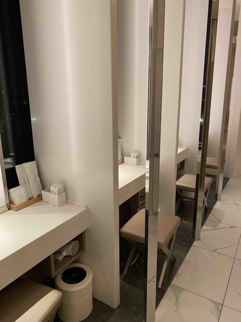 髪を乾かすスペースもたくさんあり、個室の洗面スペースもあります。