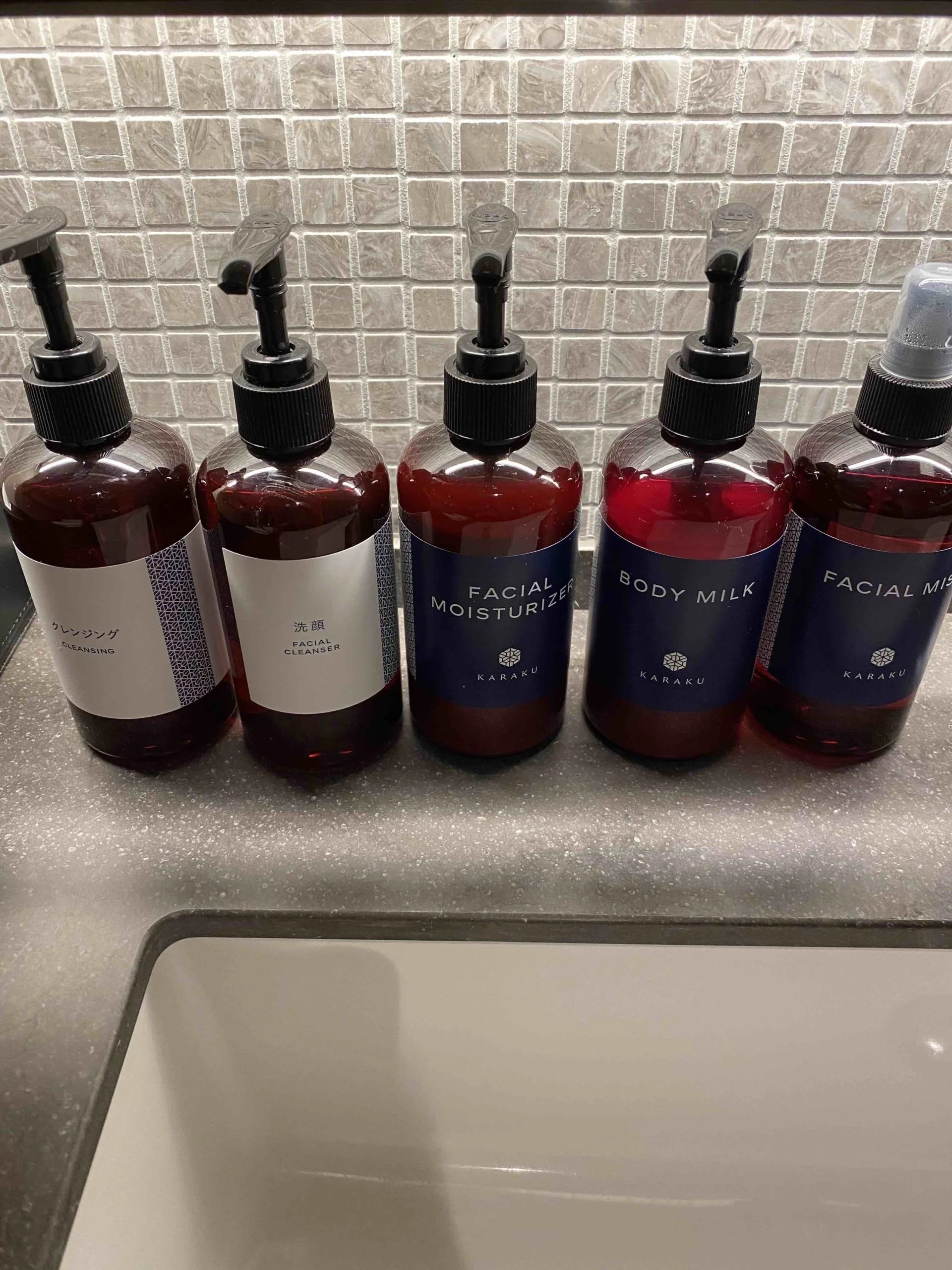 オリジナルのボトルタイプのアメニティが置いてあります。