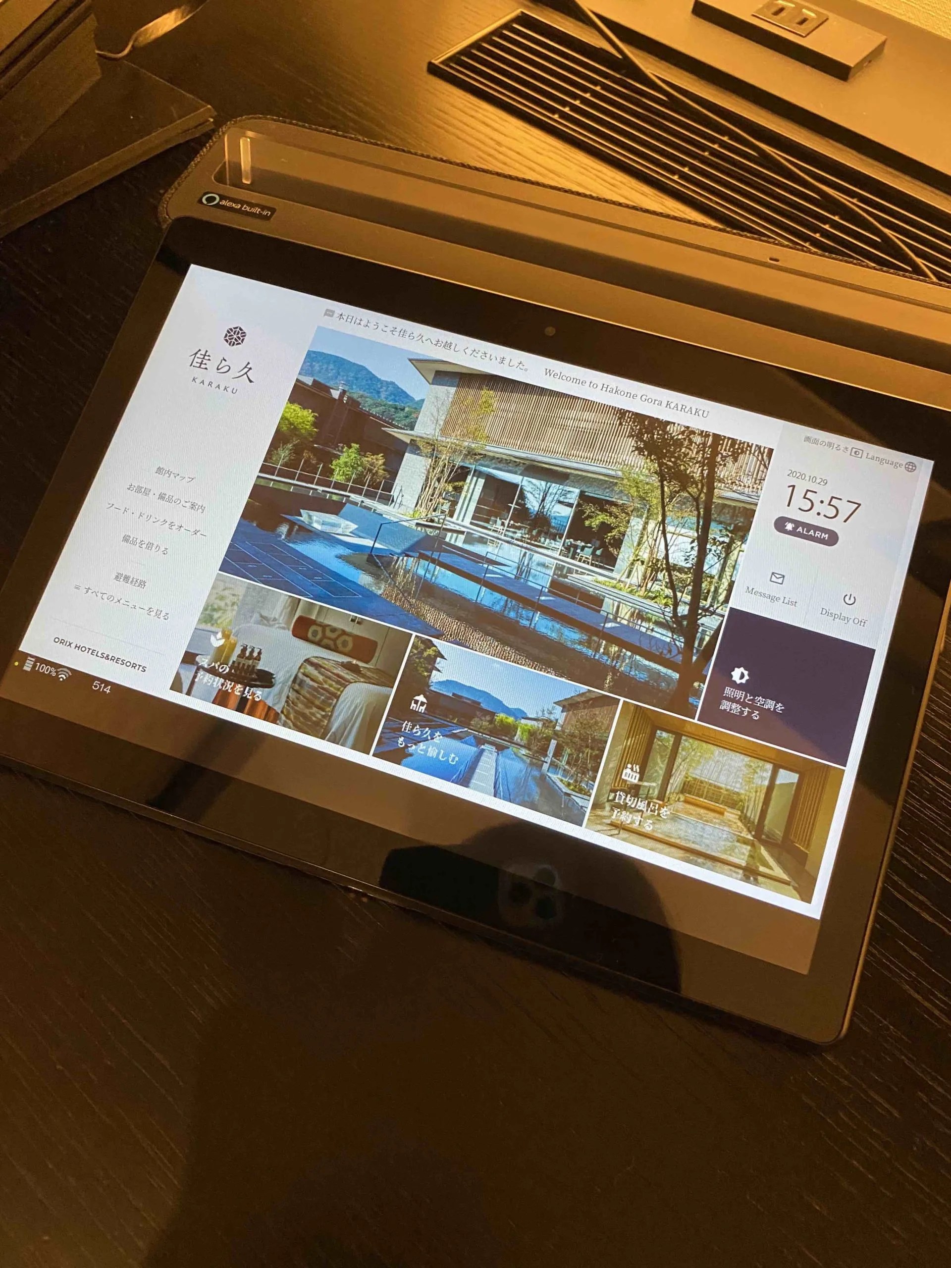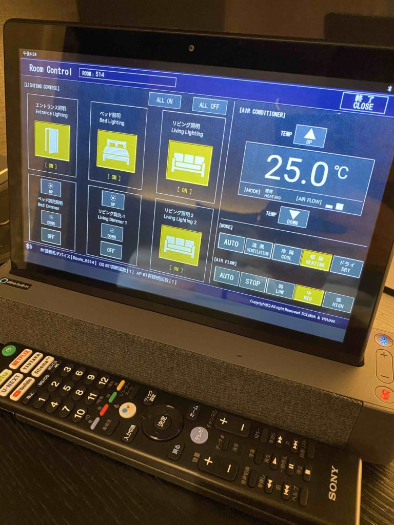 空調や照明、貸切風呂の予約等、こちらのタブレットで全て操作できます。