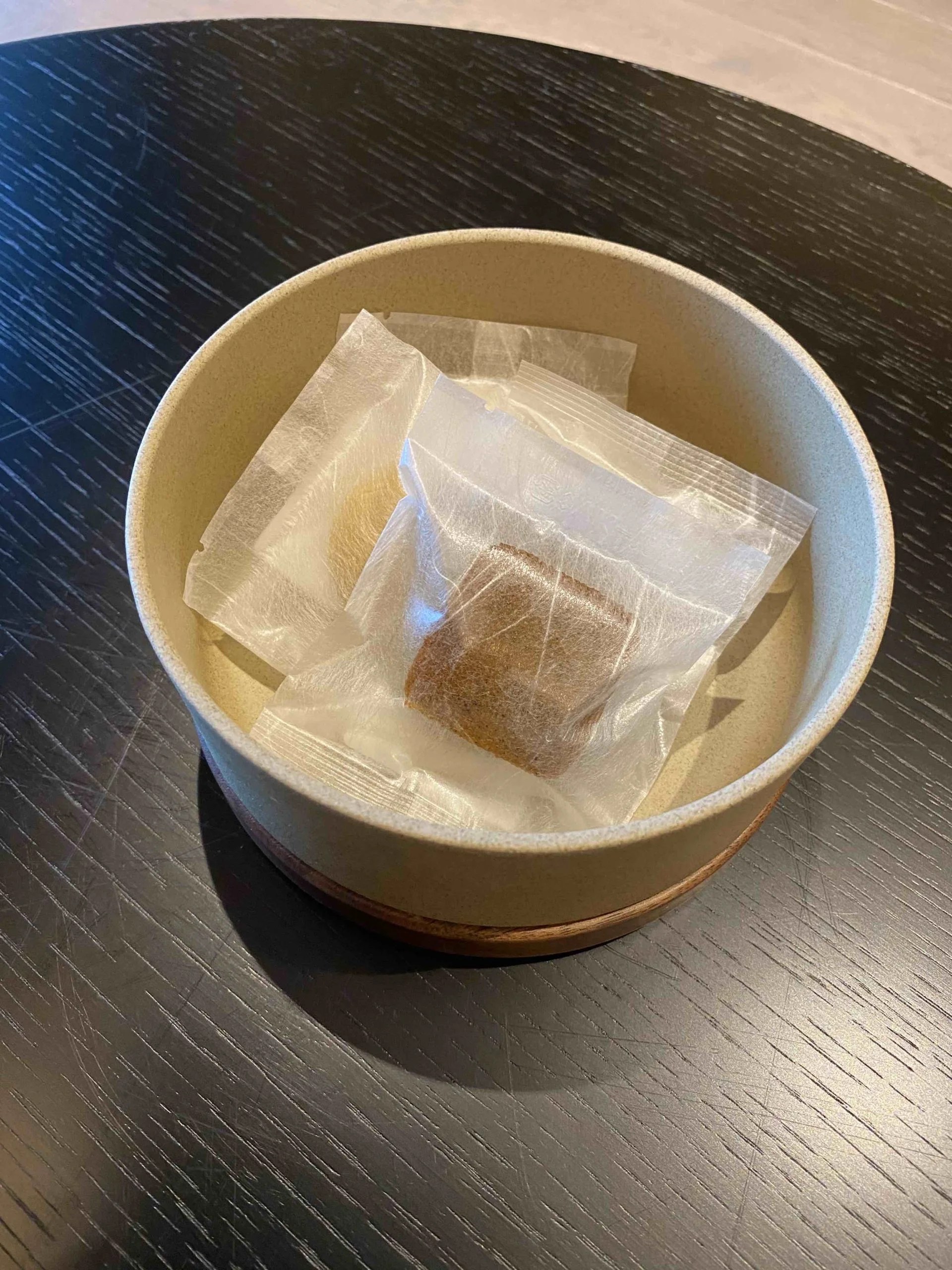 テーブルにはミニサイズのフィナンシェが。ちょこっと食べれるサイズが嬉しい。