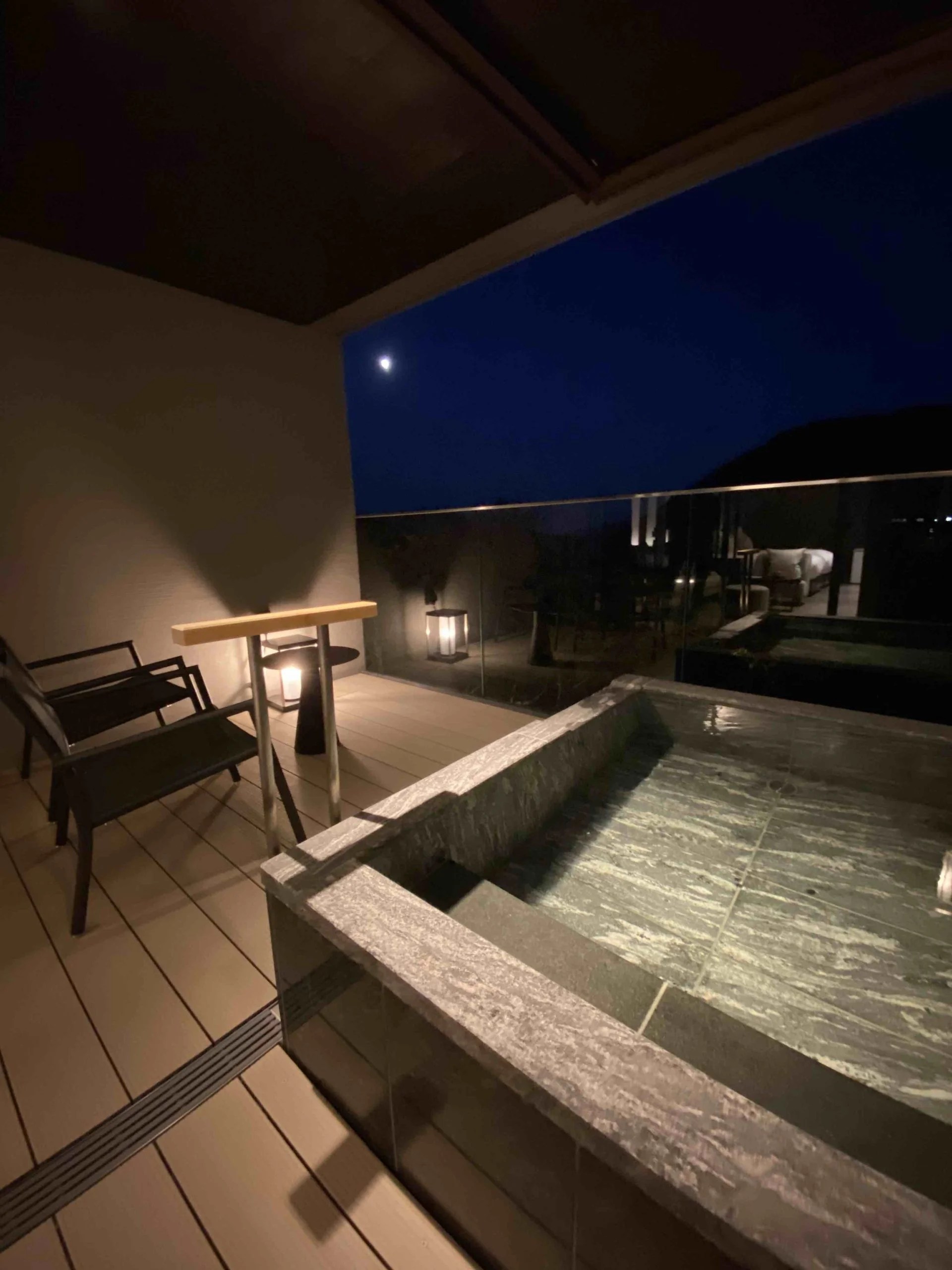 夜は月を眺めながらのまったり温泉タイム♡最高です。