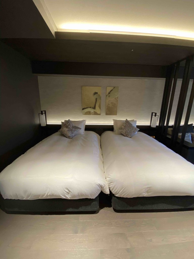ベッドはツインタイプでふかふか。