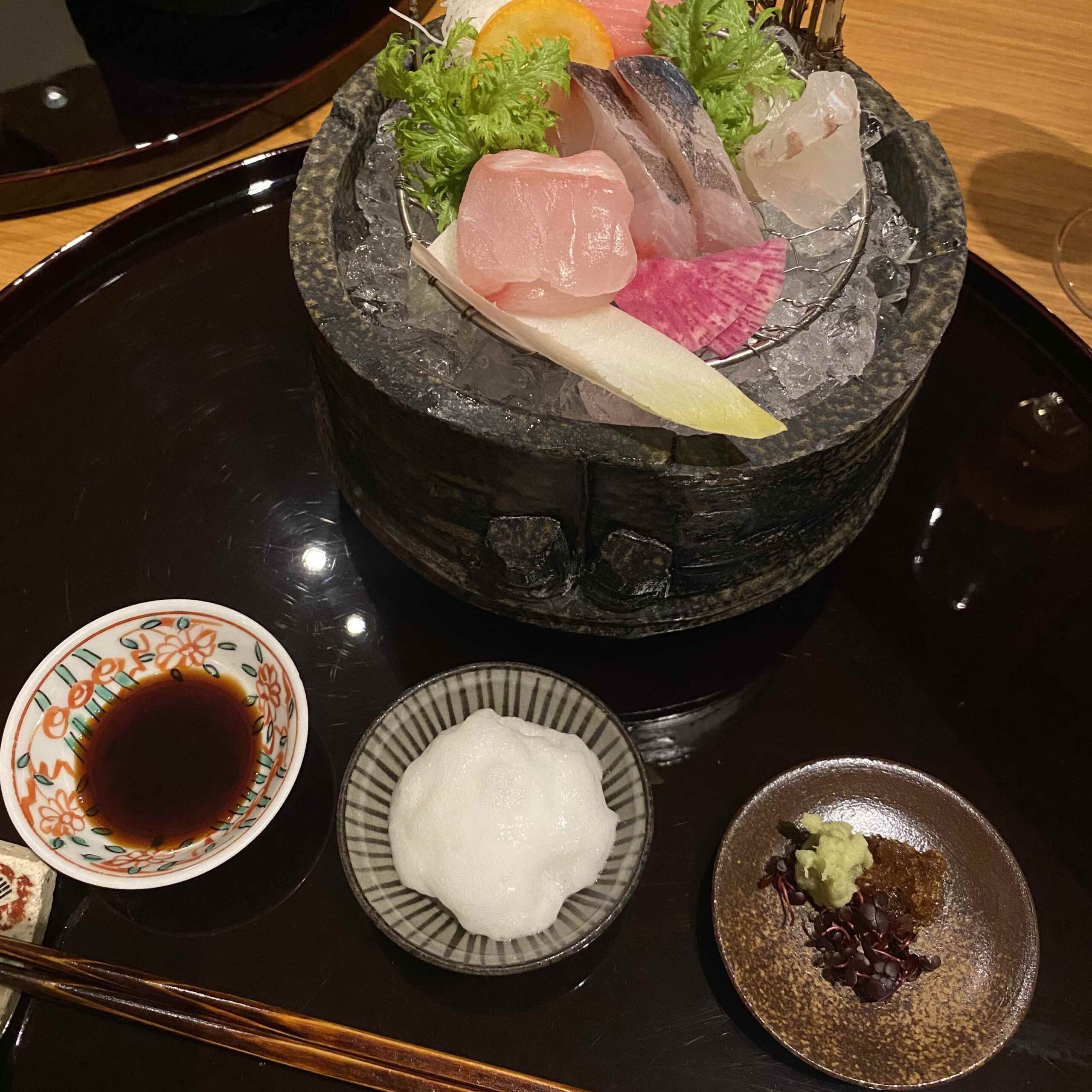 こちらで食べるお刺身は非常にさっぱりとしたお味で大変好みでした。