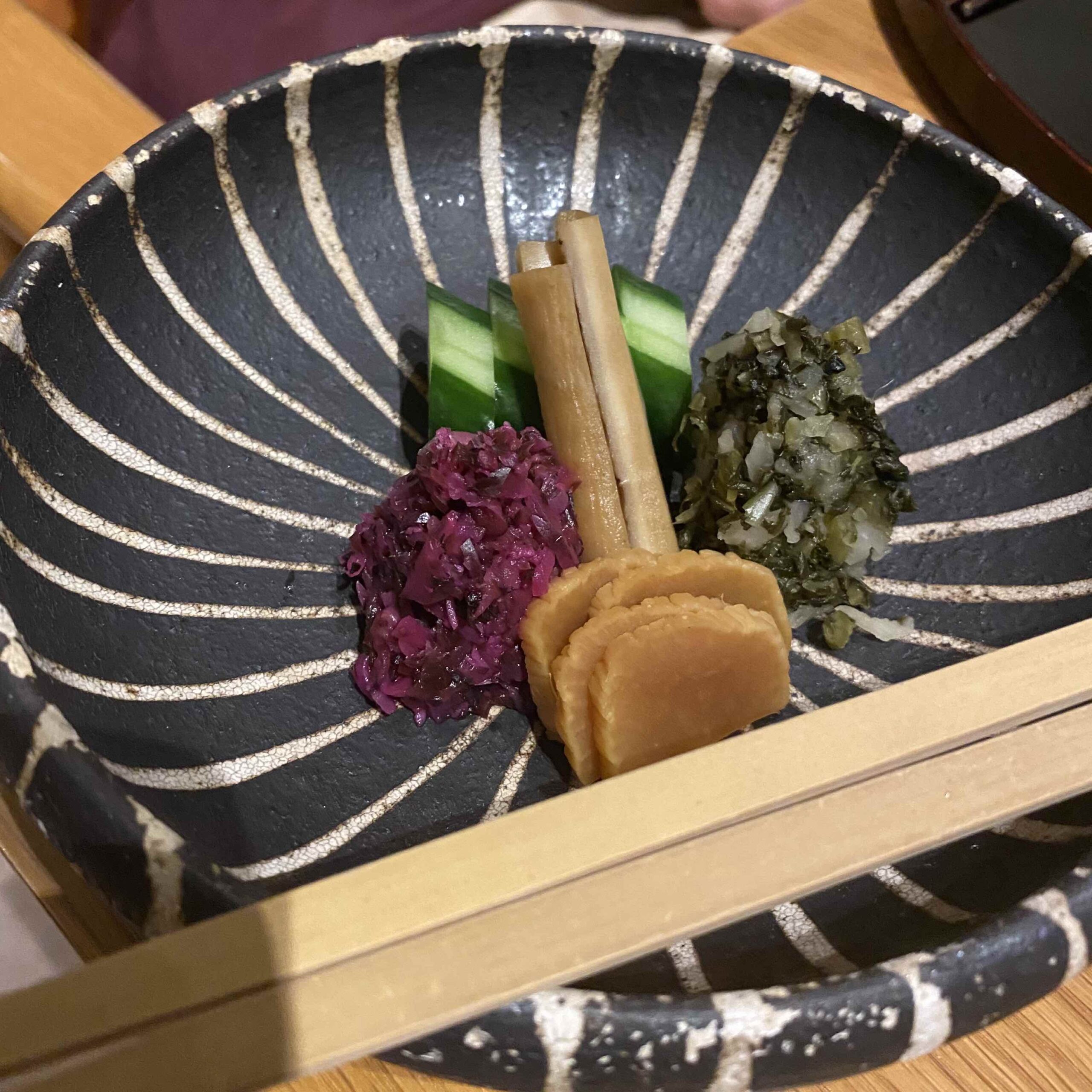 5種の香の物と一緒にいただきます。