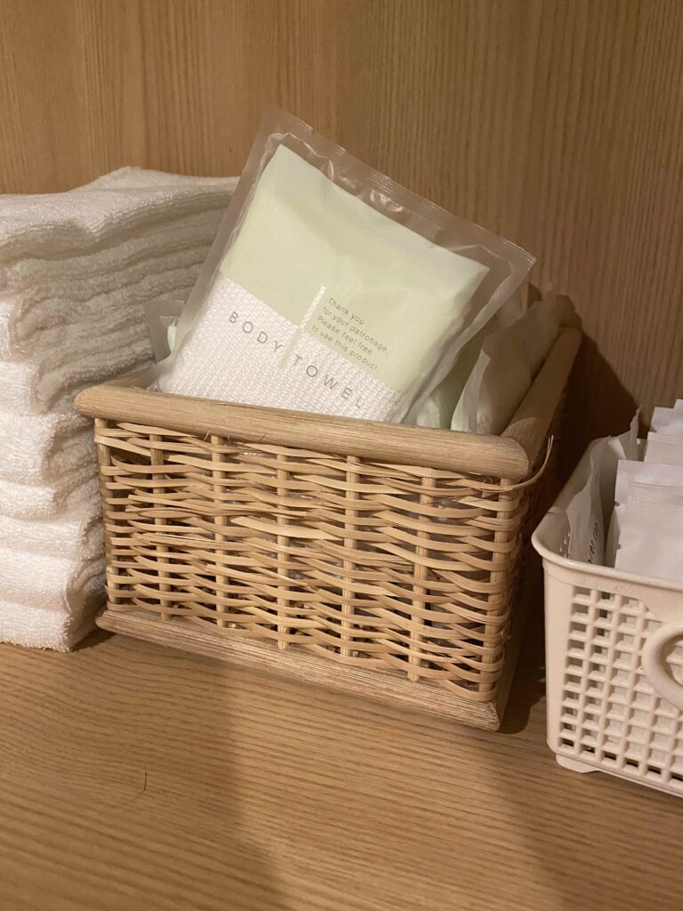 バスタオル等と並んでボディタオルが用意されてるのでとても嬉しい!