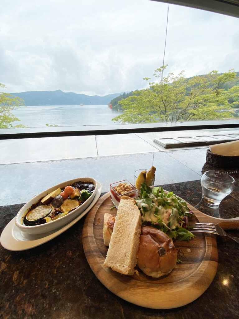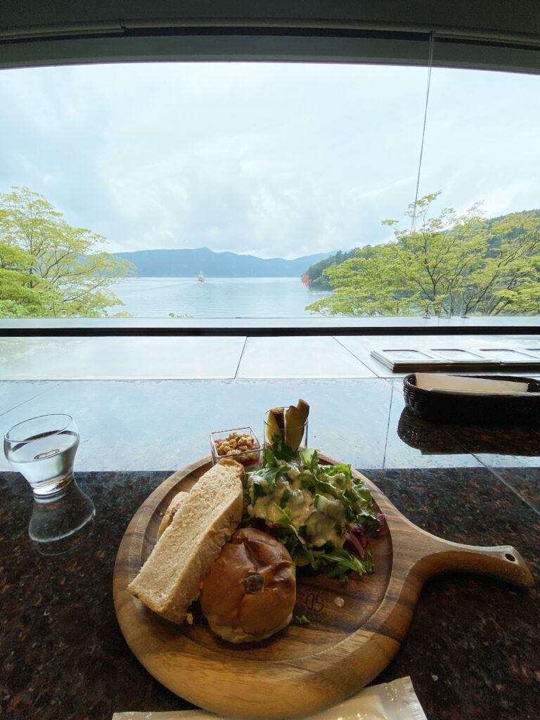 カウンターからだと遮るものがないので芦ノ湖の景色が一望できるので