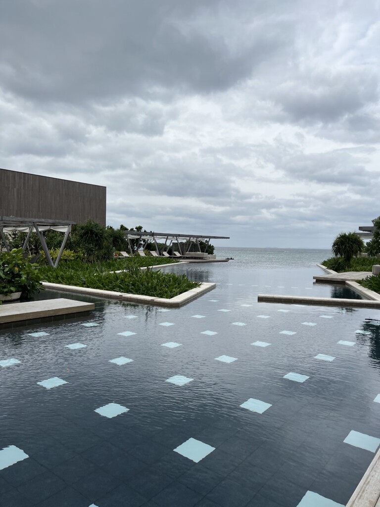 どんよりとしたお写真しか撮影できなかったのですが、星のや沖縄には一年中24時間使用できるプールがあります。
