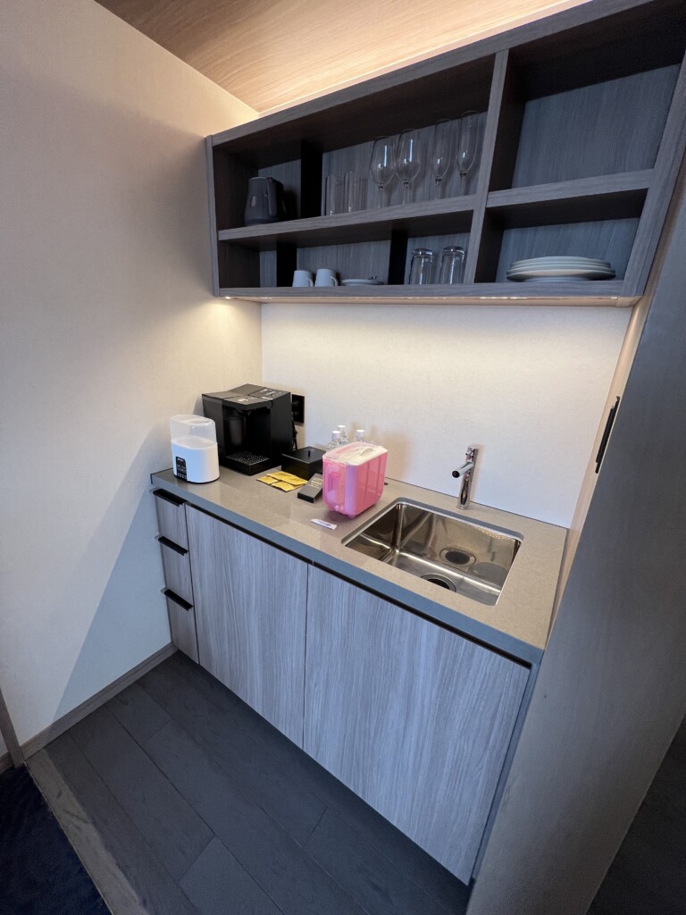 こちらのスペースの手前にはシンクやカトラリー類が置いてあります。