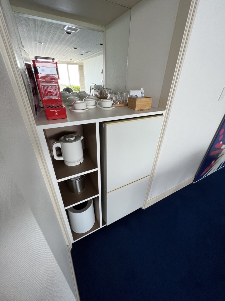 お湯が沸かせるケトルやコーヒーマシン等もばっちり揃っています。