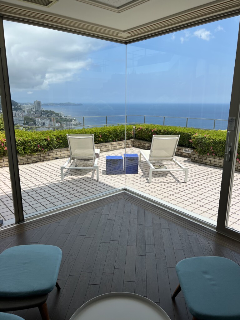 テラスに出ると、オーシャンビューの絶景が見渡せます。