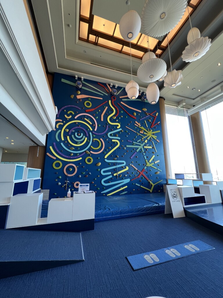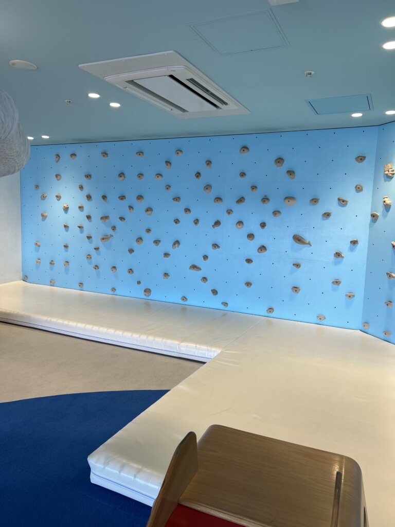 キッズスペースの外にはより本格的なクライミングウォールも。