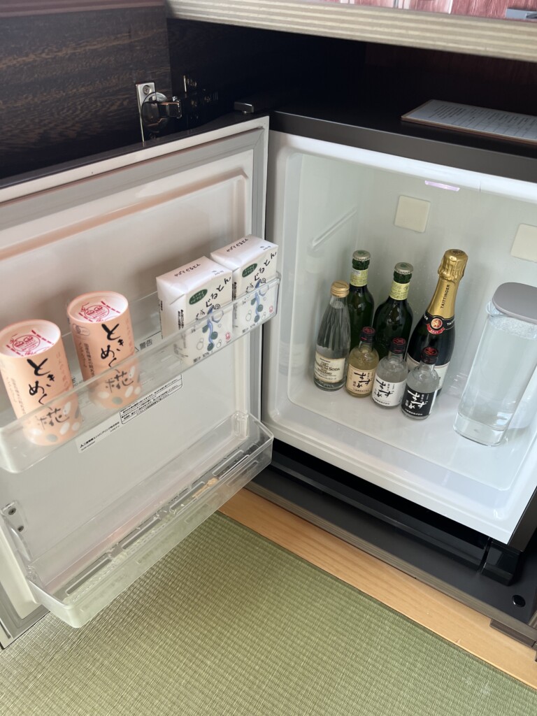 冷蔵庫はこんな感じ。お水以外は追加料金だったかな?