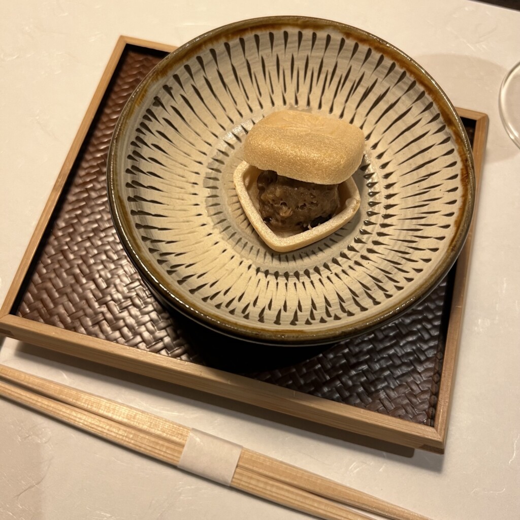 そして蓋物。金目鯛と湯葉の翡翠蒸し、銀餡。
