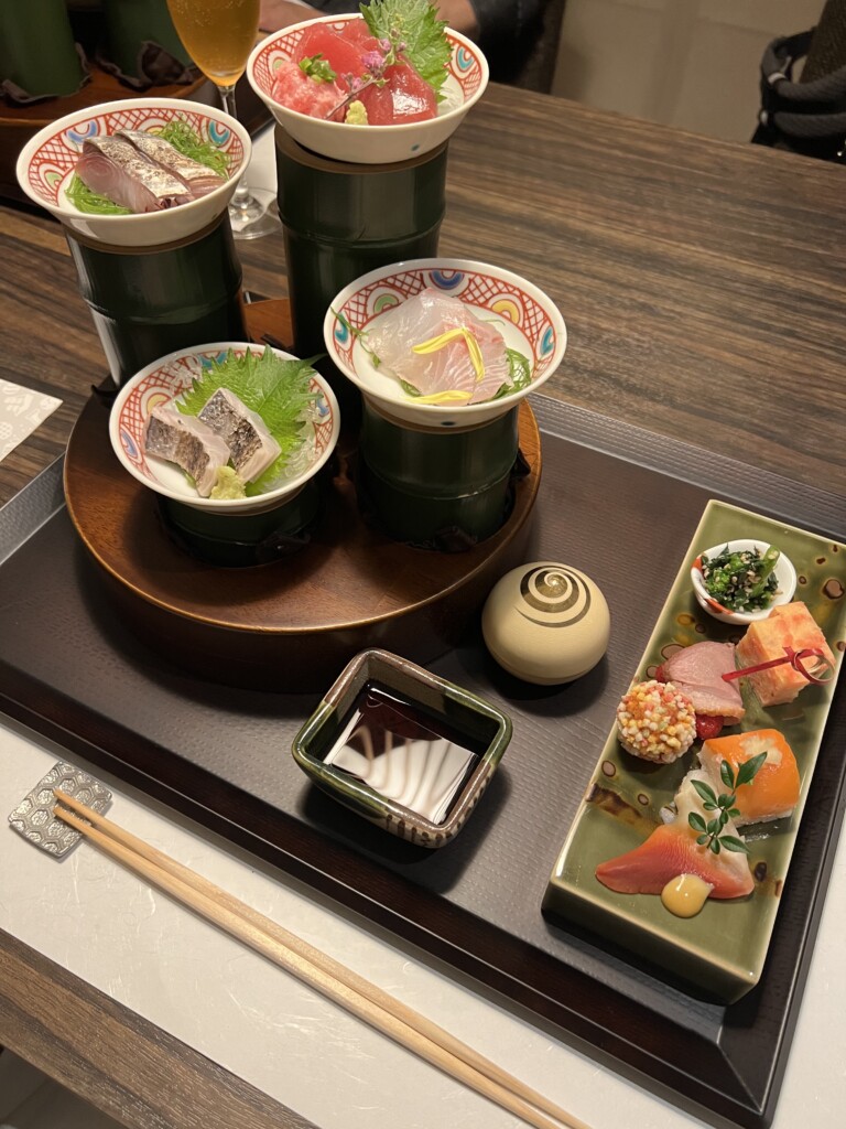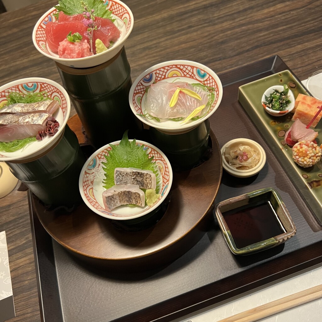 そして名物の宝楽盛り。八寸、お作り、酢の物をいただきます。