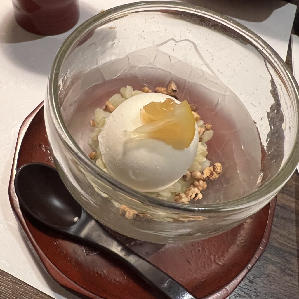 最後は甘味。界 由布院特製 やっこめのミルク煮 麦茶のゼリー。
