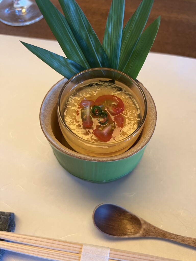 界阿蘇特製のヨーグルトのムース トマトジュレ添えをいただきました。