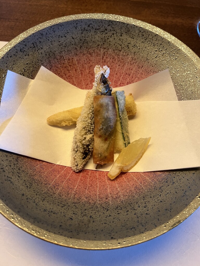 続いては稚鮎の揚げ物と野菜の天麩羅。