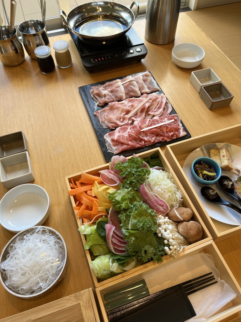 前菜が数種類としゃぶしゃぶです。