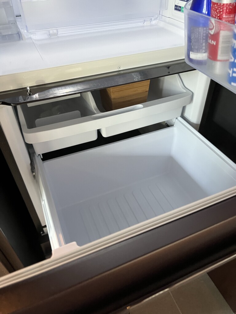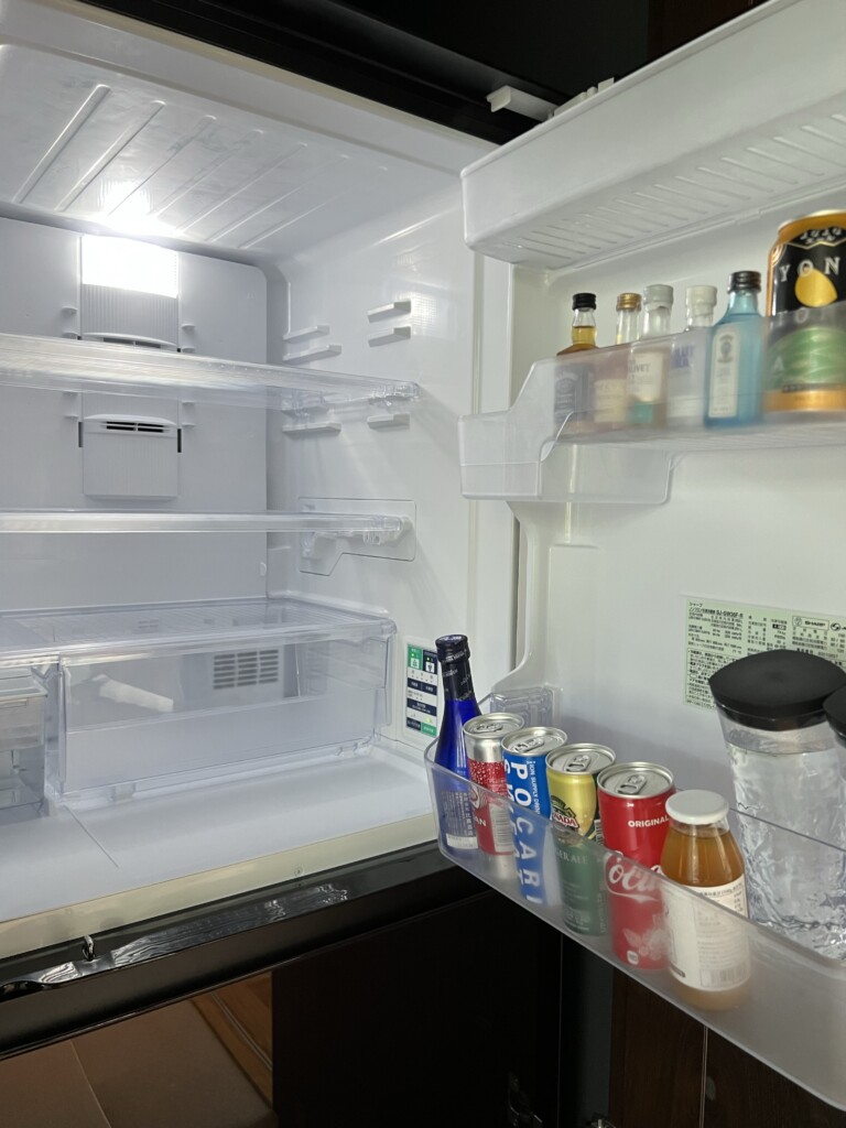 入って左側には冷凍庫もある大きな冷蔵庫と