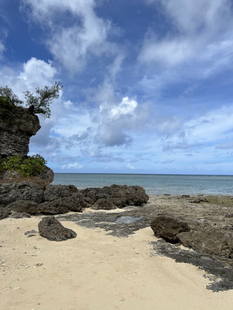 私たちが出た場所は岩場が多くなかなかワイルドな雰囲気のビーチでしたが、さすが沖縄の海、海水が透き通っていてとても綺麗な海でした。