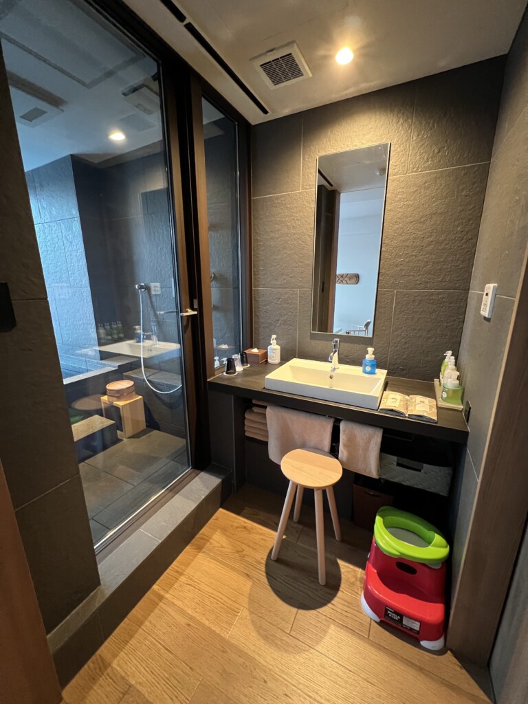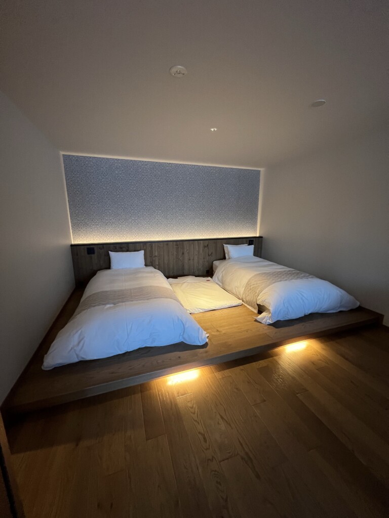 こちらは寝室スペース。当時1歳1ヶ月の子連れ旅だったので息子用に布団を敷いていただきました。ベッドだと寝返り等で転倒の可能性もあるので敷布団は安心です。