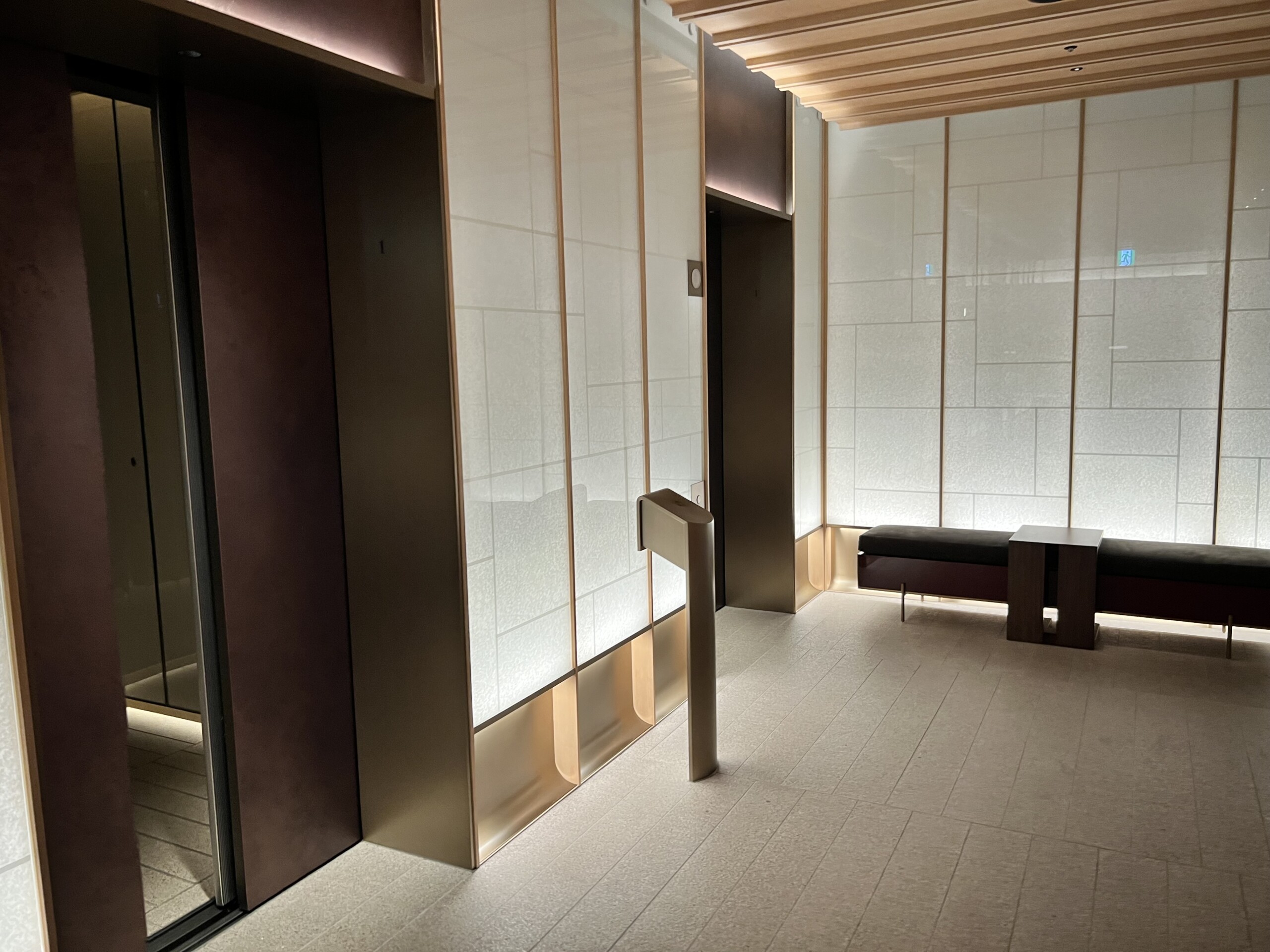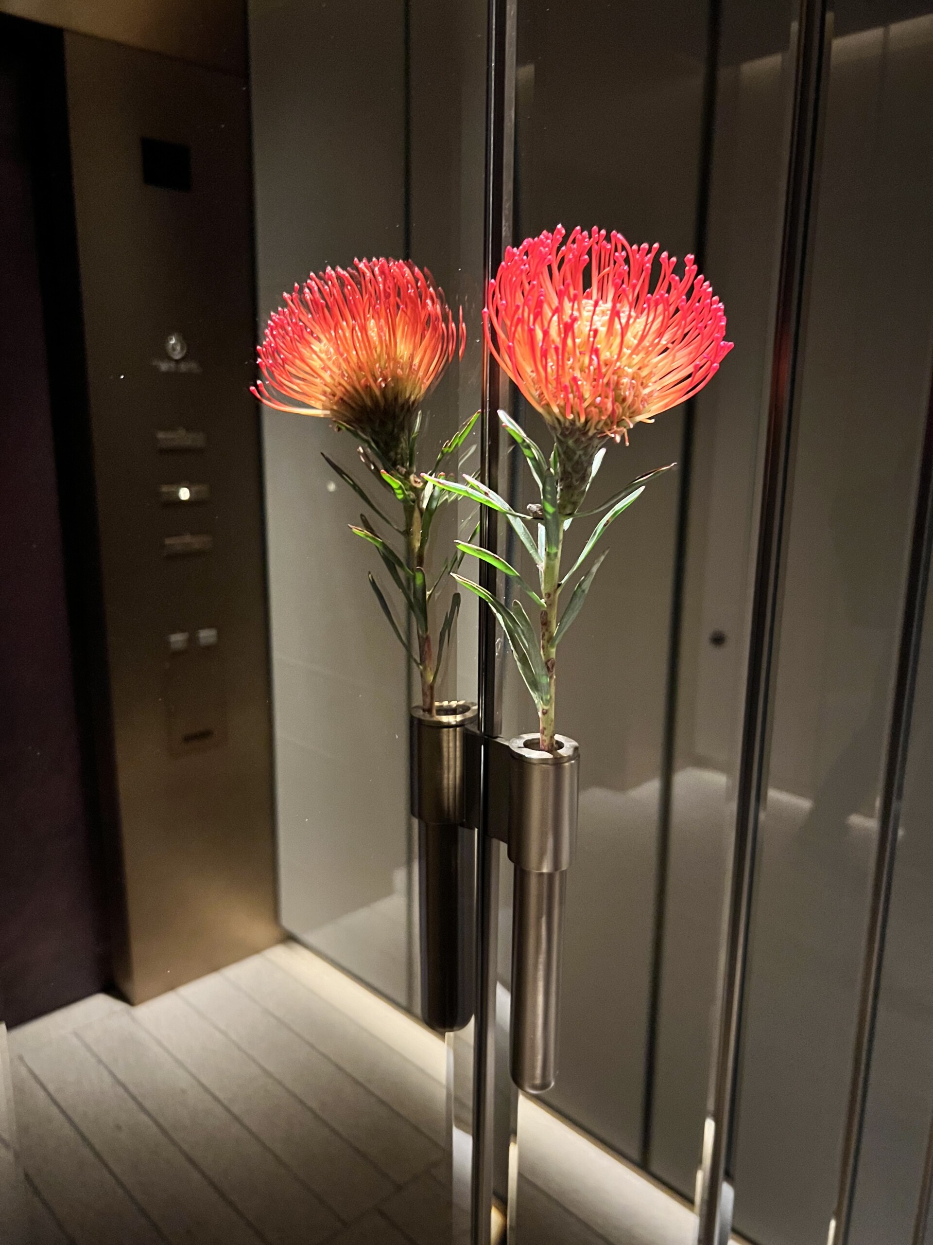 エレベータ内には美しい花のアレンジメントが飾られていました。すべてのエレベータで花が異なっているのにびっくり。