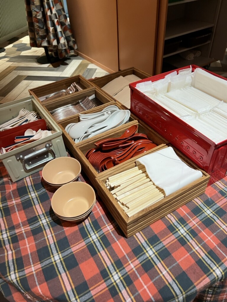 スプーンやフォーク等のカトラリー類はこちらのコーナーよりセルフでいただきます。