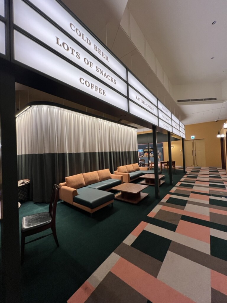 こちらには売店やカフェテリア、グループや家族、大人数でもくつろぎやすいスペースがたくさんあります。