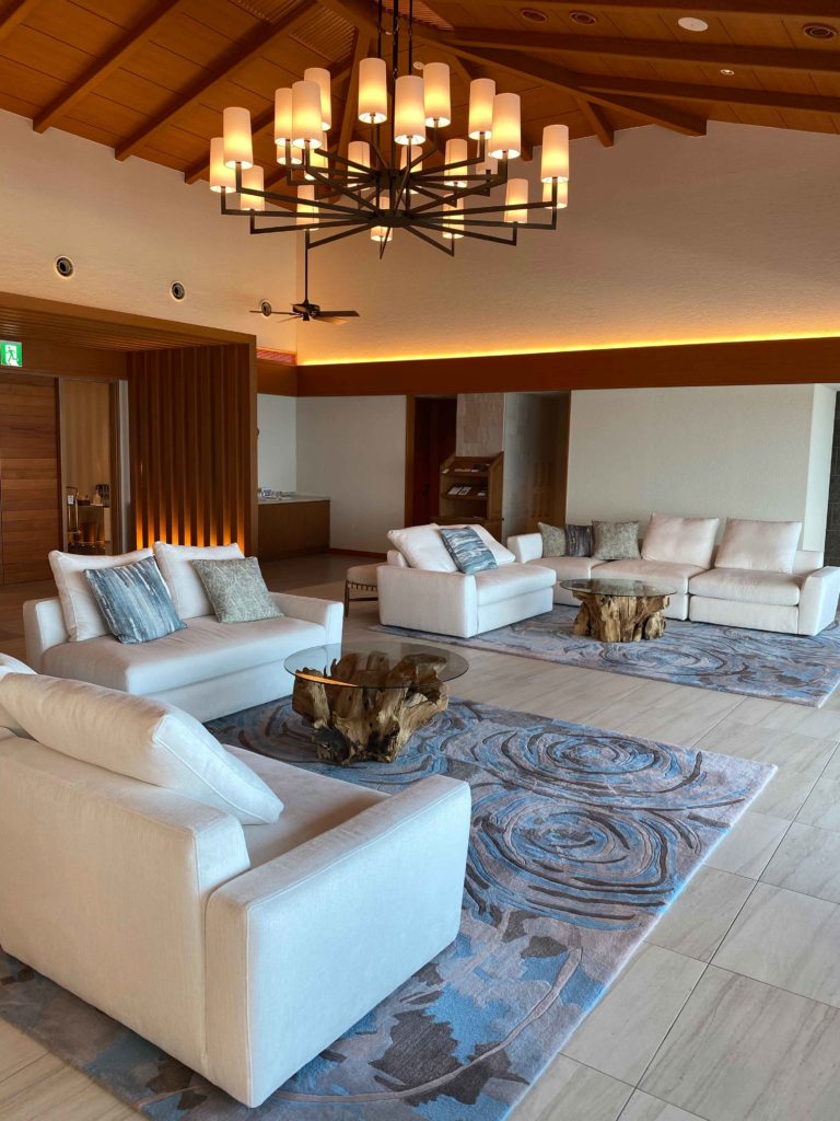 まずホテルに入ると目に入ってくるのが、広々とした海と青空の素敵な景観。